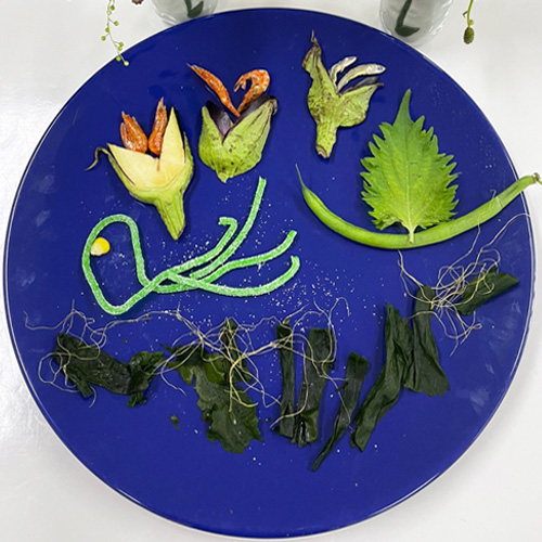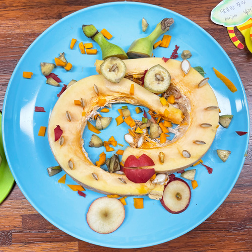 도화지 대신 접시에 다양한 식재료를 가지고 오감으로 표현하는 그리기 창의 수업